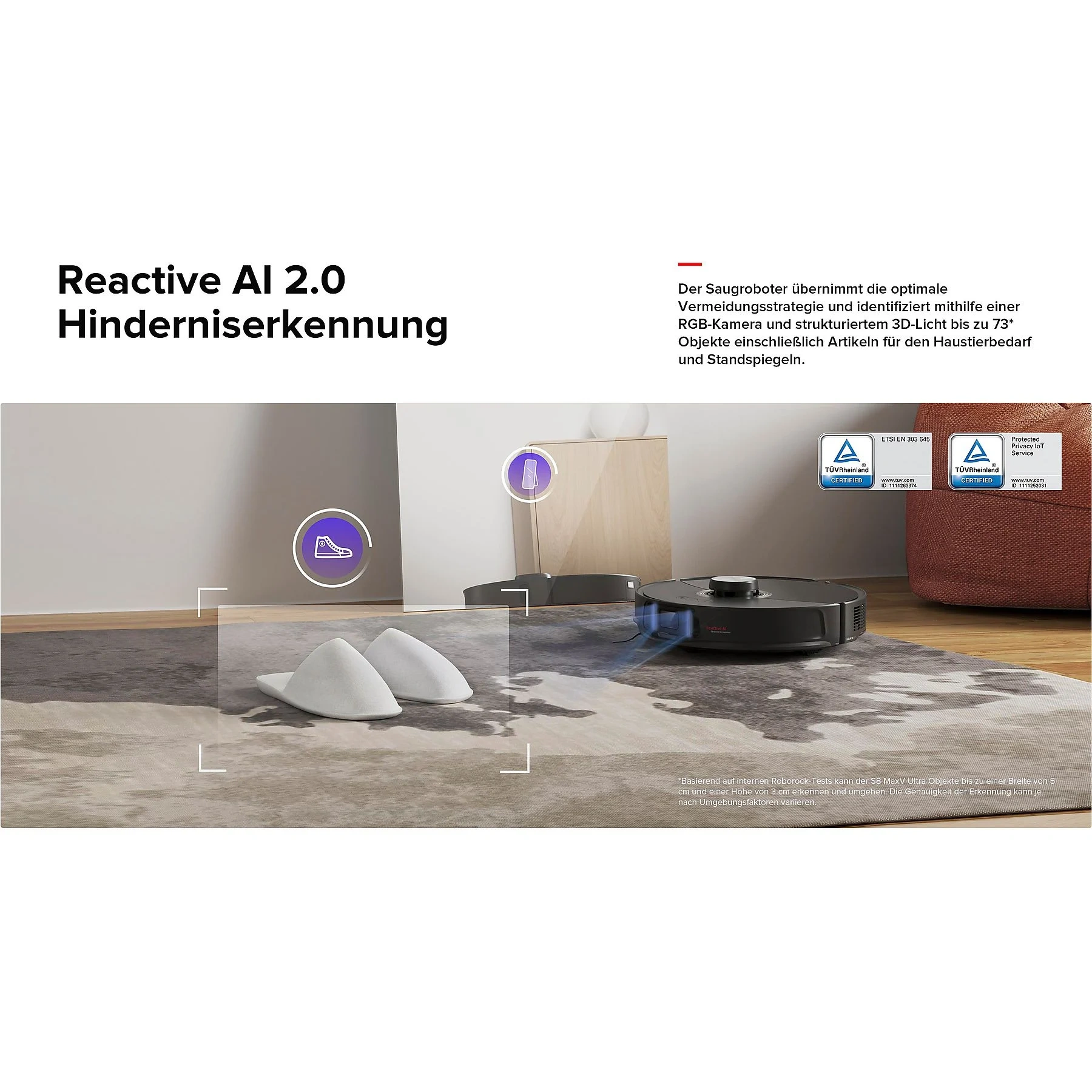 - Reactive AI 2.0 mit RGB-Kamera & 3D-Licht für präzise Hinderniserkennung
