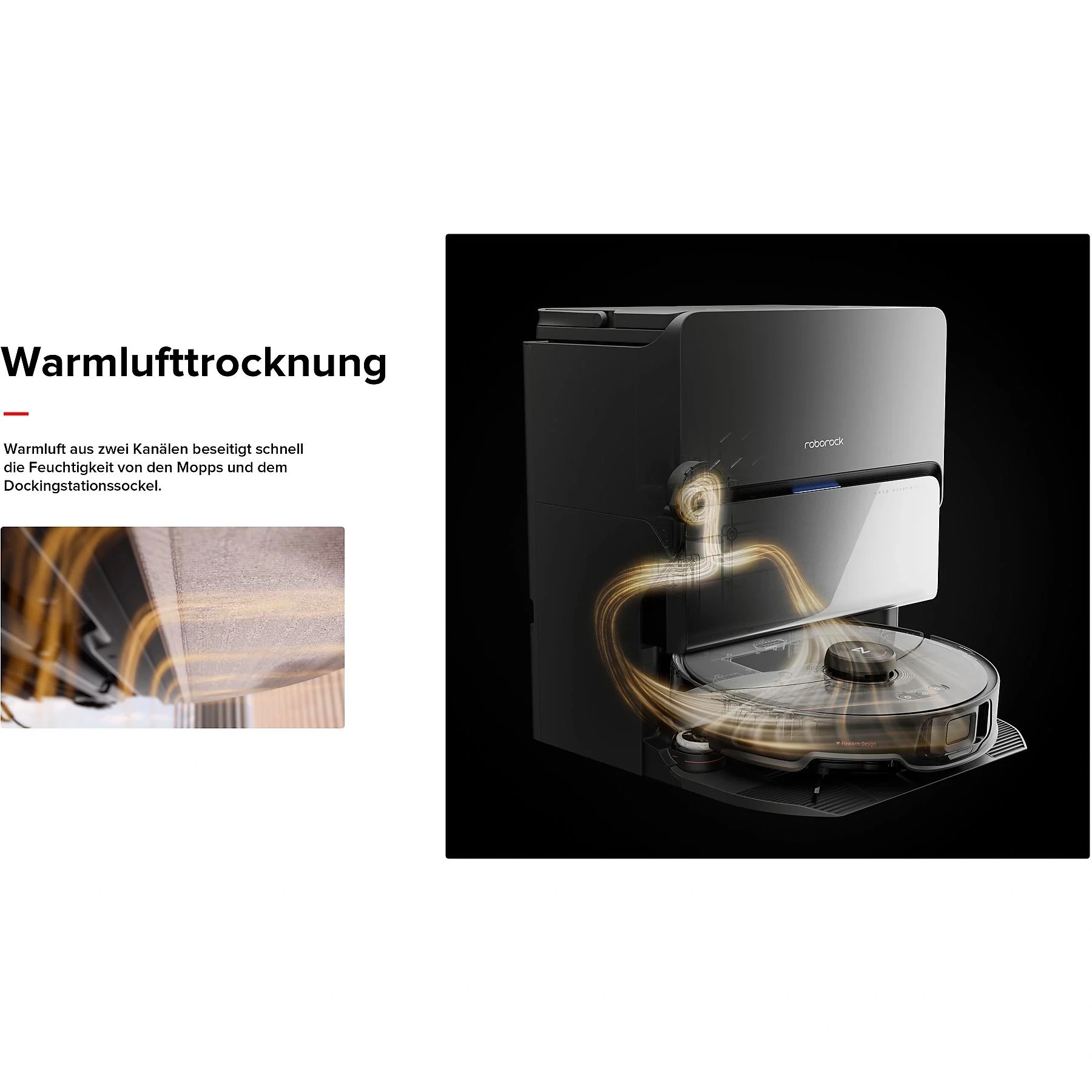| Besondere Features | FlexiArm™, Kantenwischsystem, Videokamera, AI-gestützte Schmutzerkennung, Sprachsteuerung |