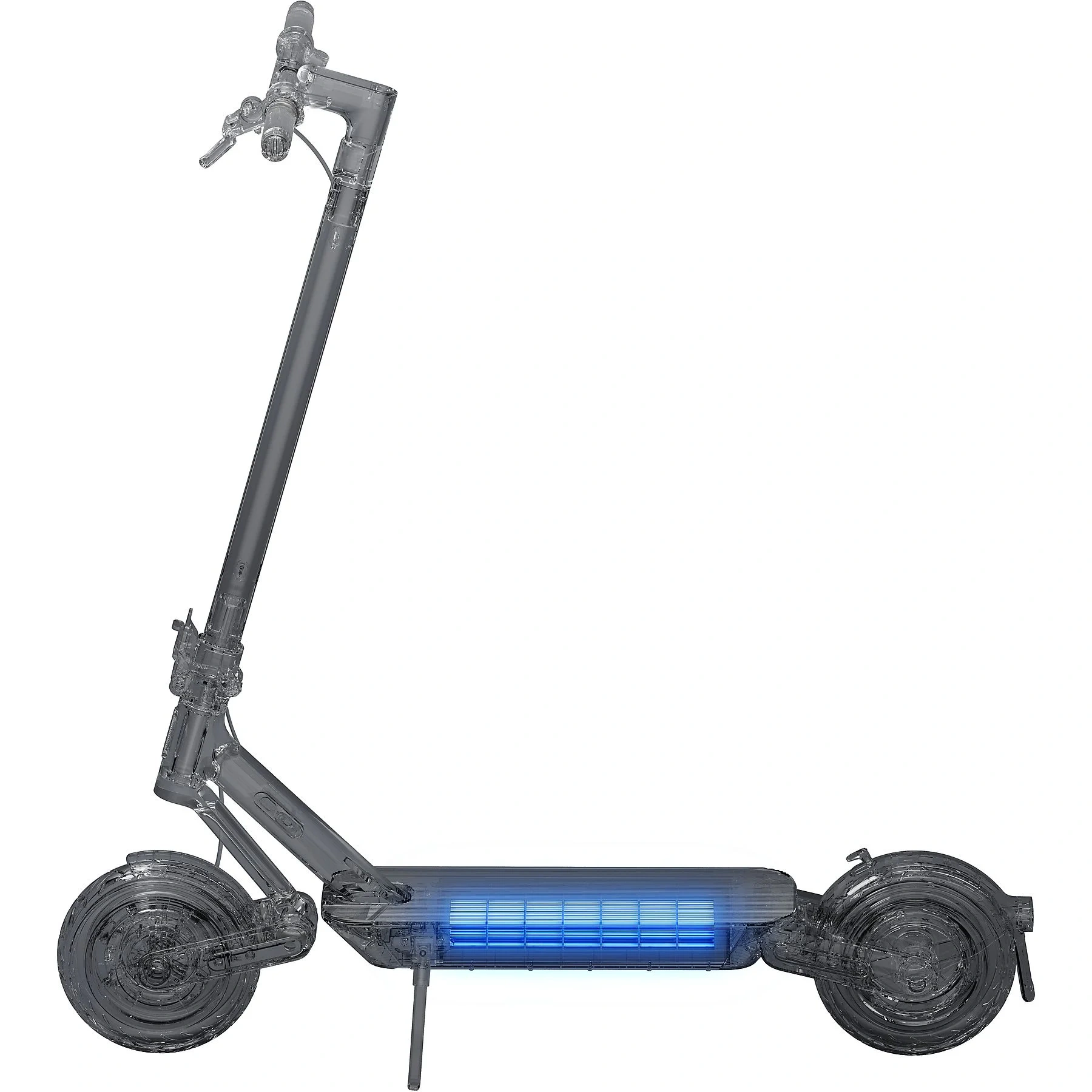 Highlights: Kräftige Beschleunigung (S+-Modus), 70 km Reichweite, Dual-Federung, selbstdichtende 10″-Reifen, IP55, LED-Front-/Rücklicht, App-Monitoring & -Einstellungen.