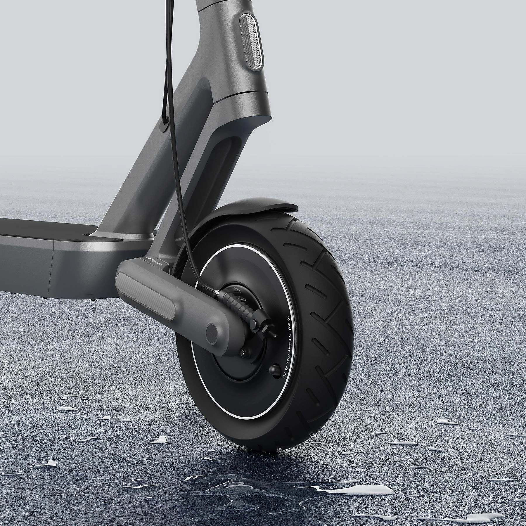 Der Electric Scooter 4 Ultra ist auf langen, komfortablen City-Einsatz ausgelegt: Das doppelte Federungssystem an Vorder- und Hinterrad reduziert Vibrationen spürbar, während die schlauchlosen, selbstdichtenden 10″-Xiaomi-DuraGel-Reifen das Pannenrisiko senken und die Fahrstabilität erhöhen. Ein bürstenloser Motor mit bis zu 940 W Spitzenleistung liefert kräftige Beschleunigung und bewältigt Steigungen bis 25 %.